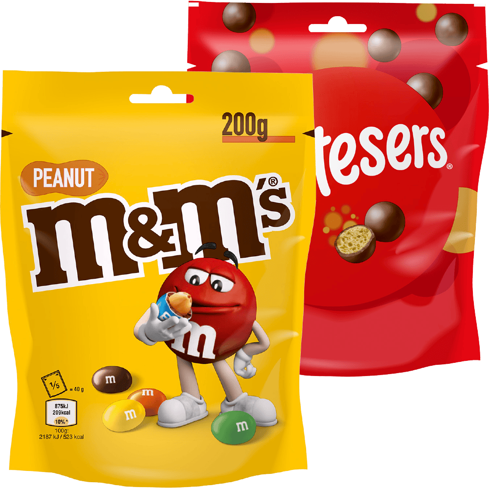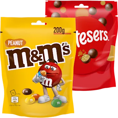 Bijv. M&M'S Pinda, 3 zakken à 200 gram van 10.17 voor 6.78.