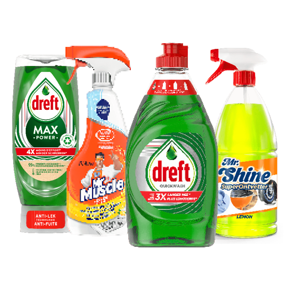 Alle Dreft Handafwas, Mr. Muscle en Mr. Shine