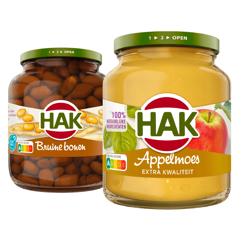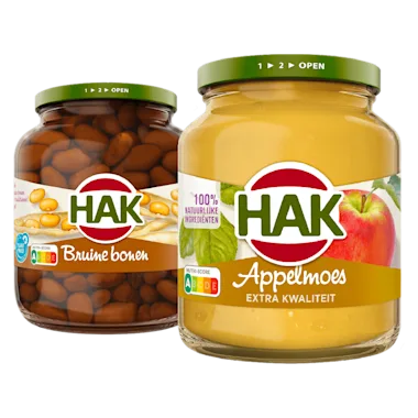 Bijv. Appelmoes extra kwaliteit, 2 potten à 355 gram van 4.38 voor 2.19.