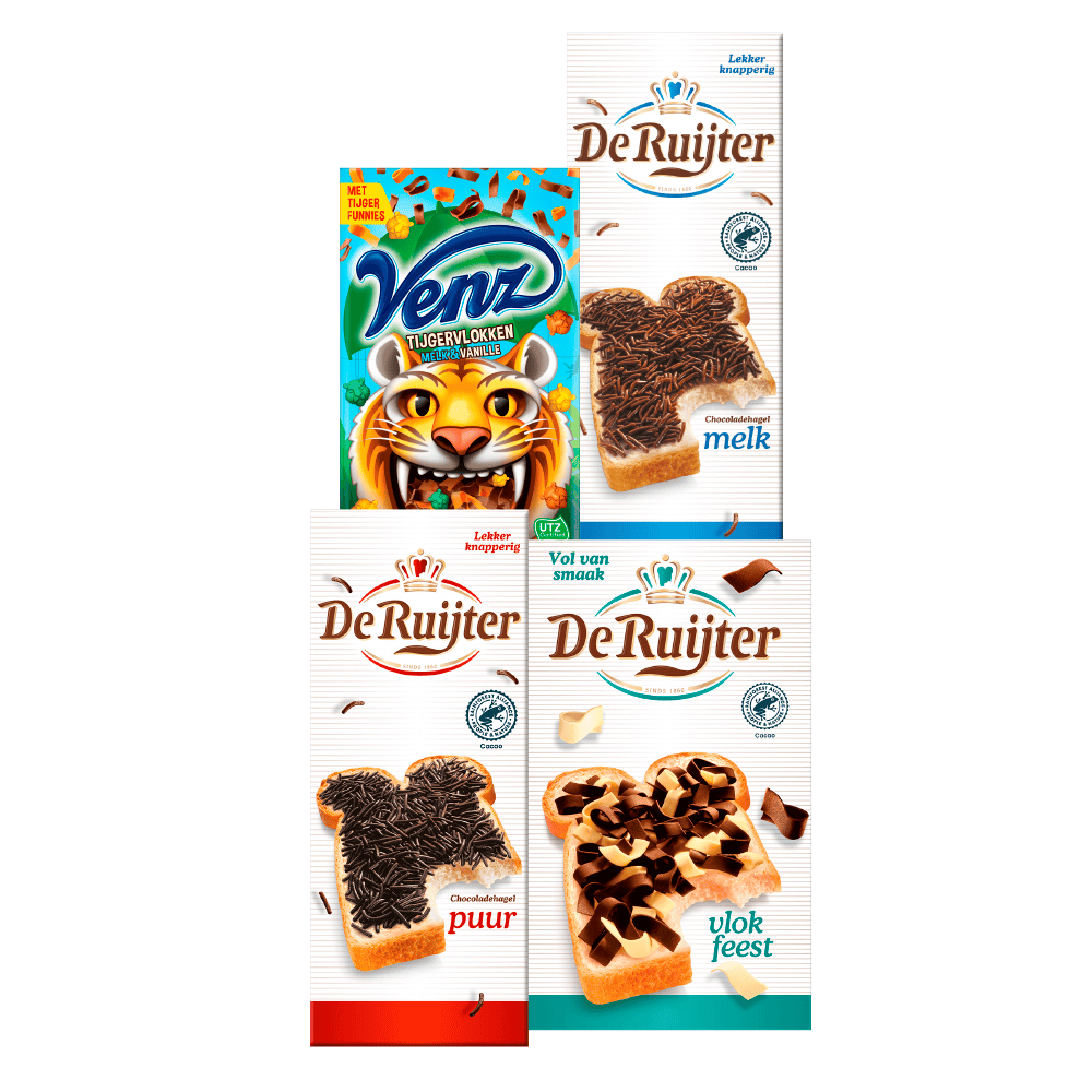 Bijv. De Ruijter Chocolade hagelslag puur, 2 pakken à 200 gram van 5.78 voor 4.33.