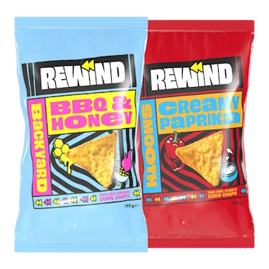 Bijv. Tortilla chips BBQ & honey, 2 zakken à 160 gram van 3.78 voor 1.89.