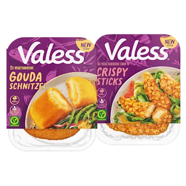 Bijv. Gouda schnitzel, 2 pakken à 180 gram van 7.38 voor 3.69.