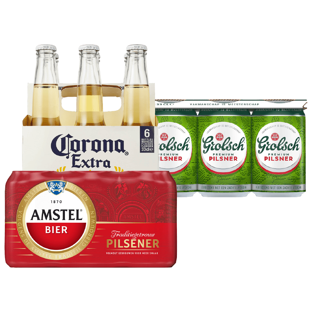 Alle flesjes en blikjes à 30-50 cl en sets M.u.v. gekoelde varianten