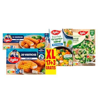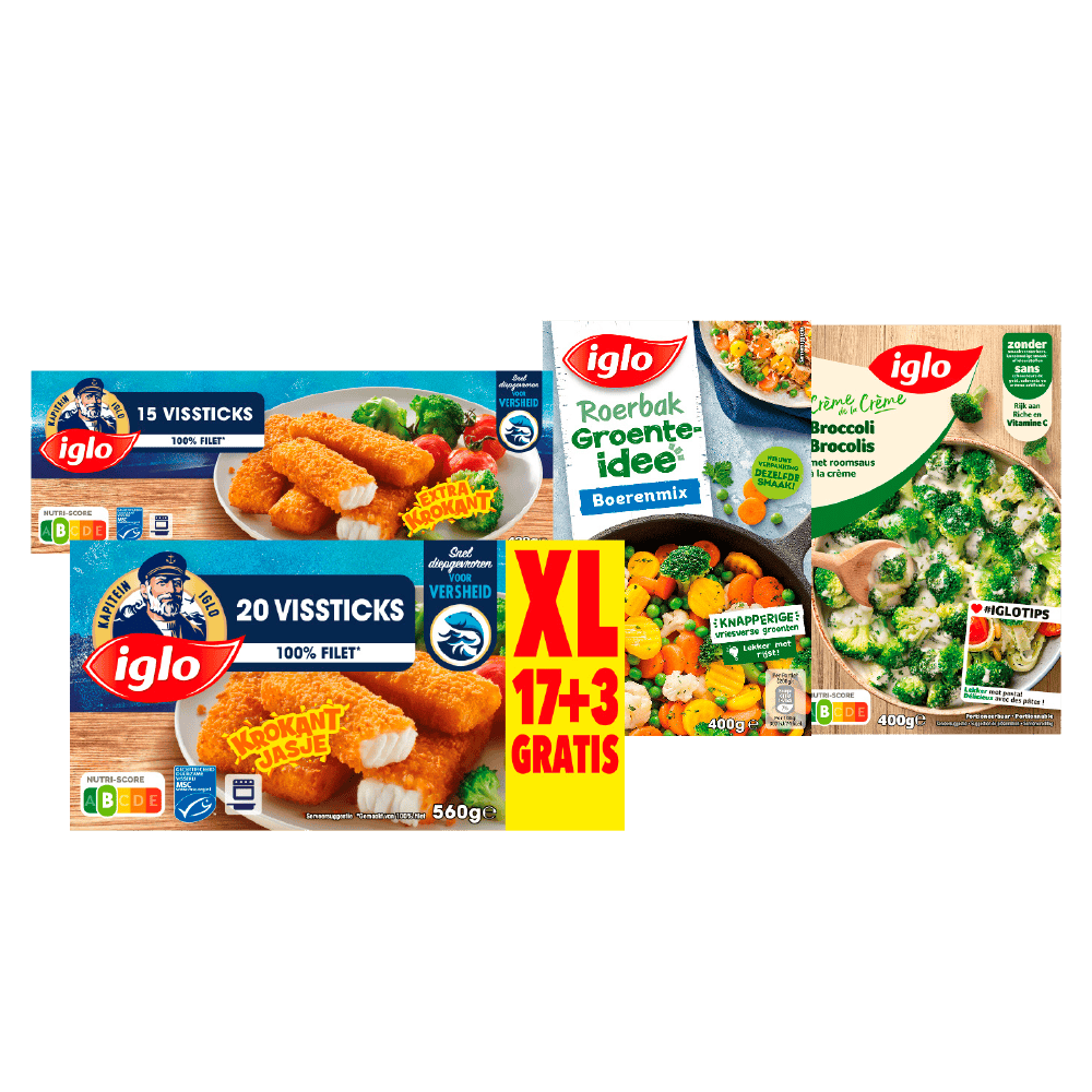 Iglo Vissticks, groente-idee en crème de la crème