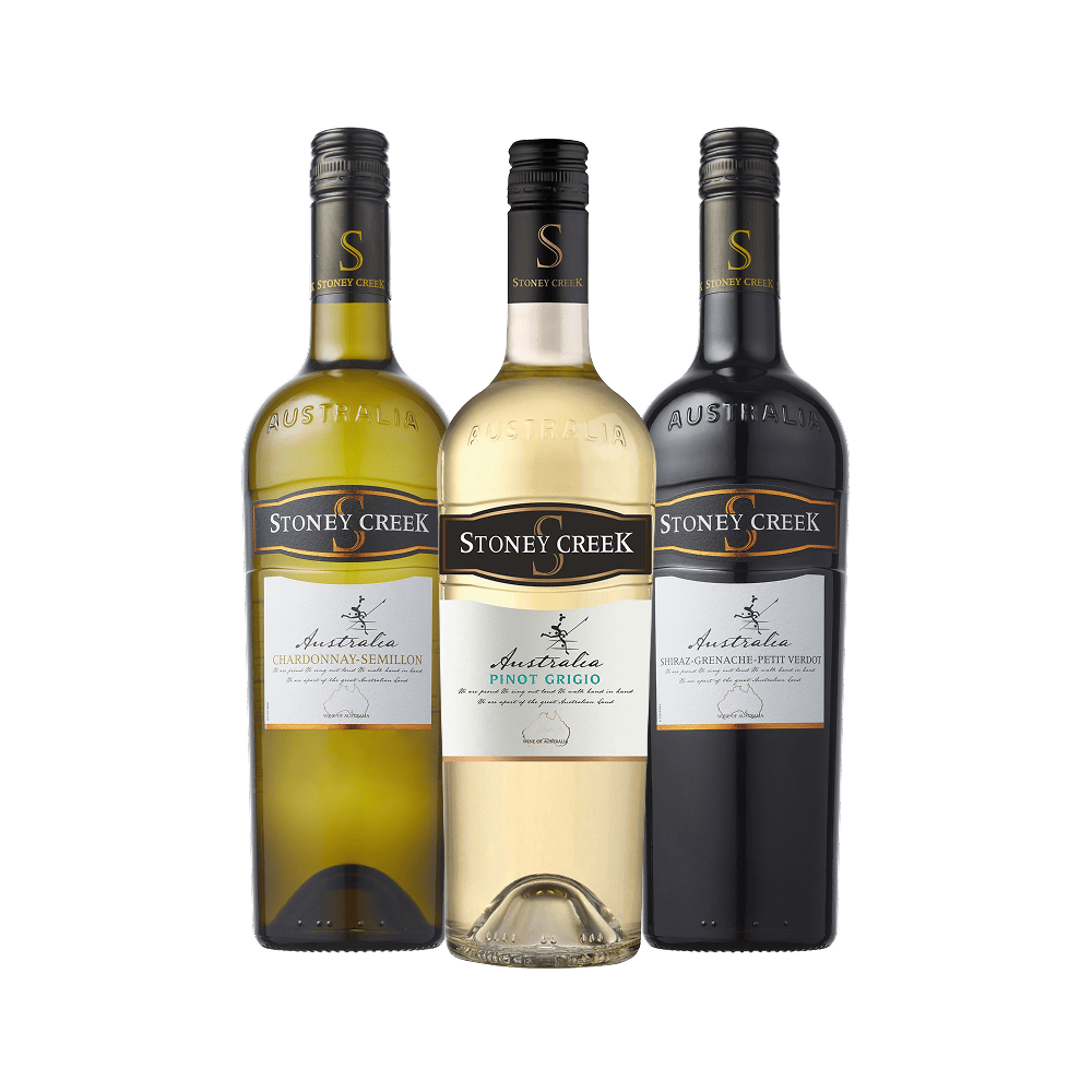 Stoney Creek Chardonnay Semillon, Pinot Grigio en Shiraz Grenache & Petit Verdot