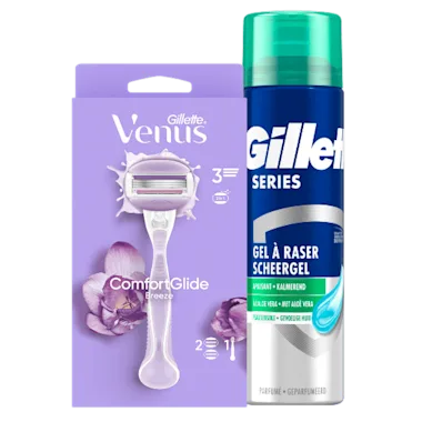 Bijv. Gillette Venus ComfortGlide breeze razor H+2, per stuk van 18.49 voor 9.24.