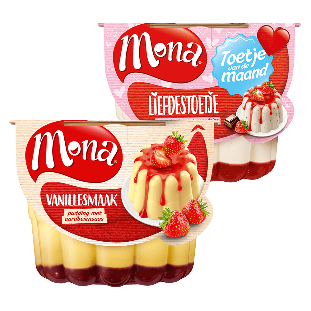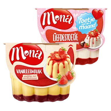 Mona Vanillepudding met aardbeiensaus