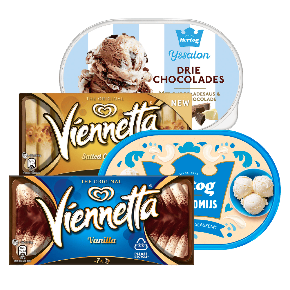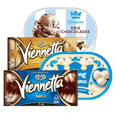 Hertog IJs Alle varianten en Ola Viennetta IJs Alle pakken à 650 ml-1000 ml