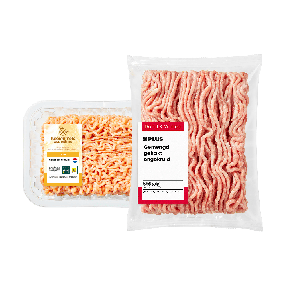 PLUS Gemengd-, kip- en pastagehakt