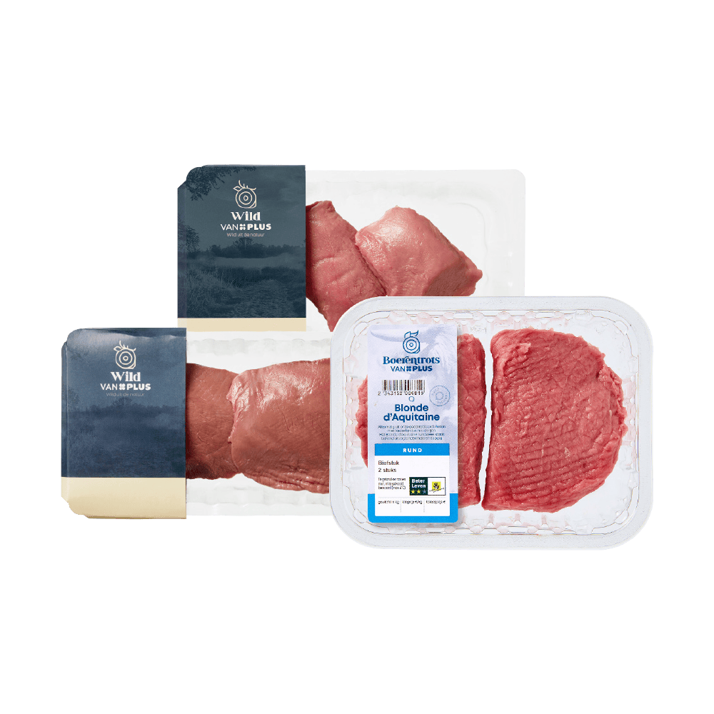 Blonde d'aquitaine biefstuk En PLUS Hert en Wildzwijn biefstuk