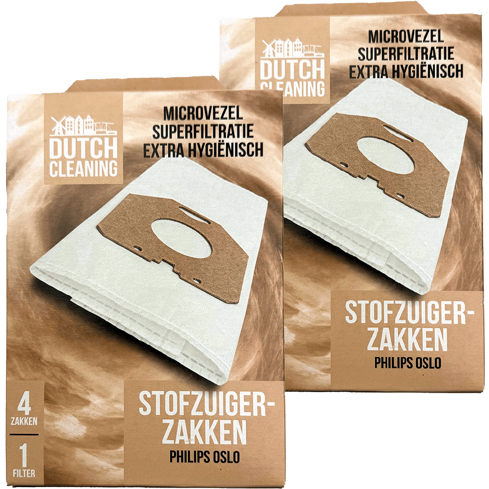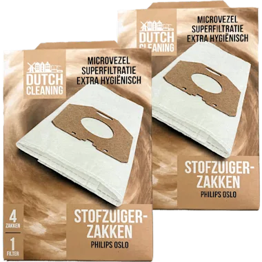 Bijv. Stofzuigerzakken Philips Oslo, 2 dozen à 4 stuks van 9.98 voor 4.99.