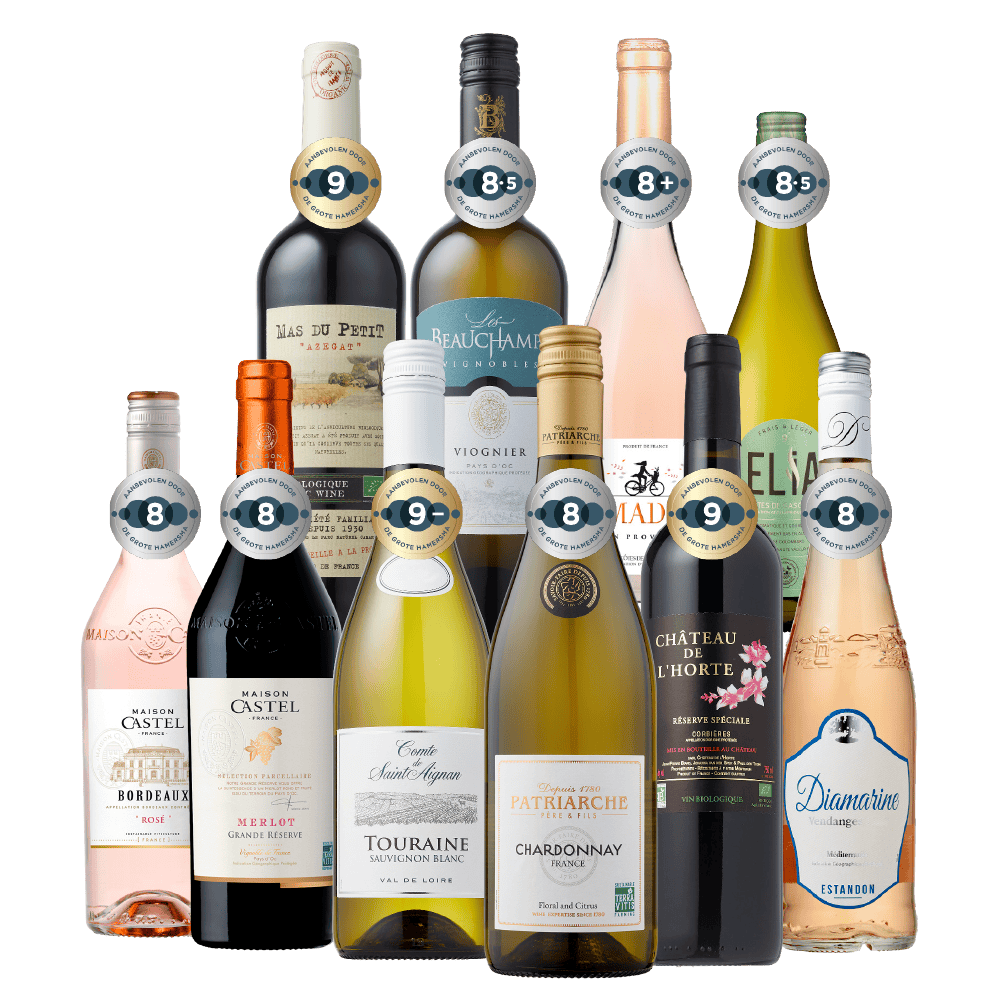 Bijv. Patriarche Vin de Pays Chardonnay, fles 75 cl van 4.99 voor 3.75.