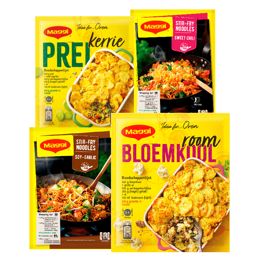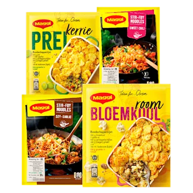 Bijv. Ovenschotel bloemkool room, 3 zakjes à 57 gram van 5.55 voor 3.70.