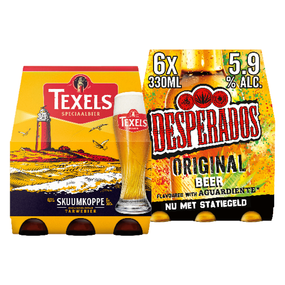 Bijv. Texels Skuumkoppe, set 6 flesjes à 30 cl van 9.99 voor 7.50.