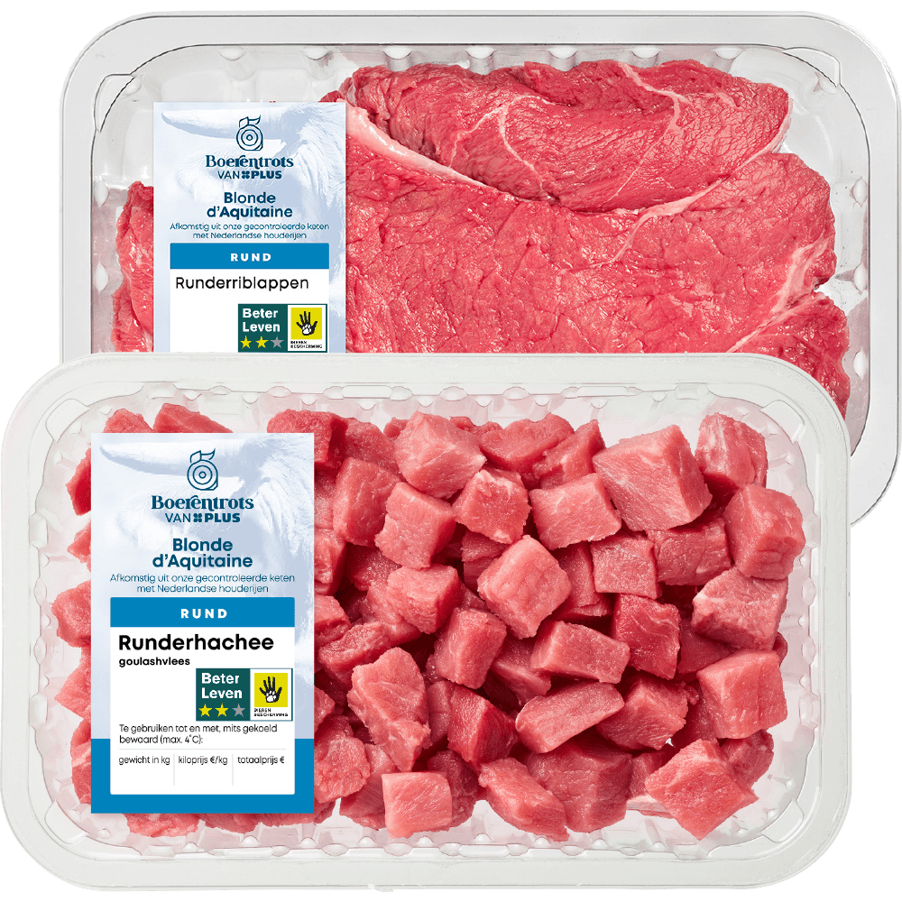 Boerentrots van PLUS Runderhachee en runderriblappen