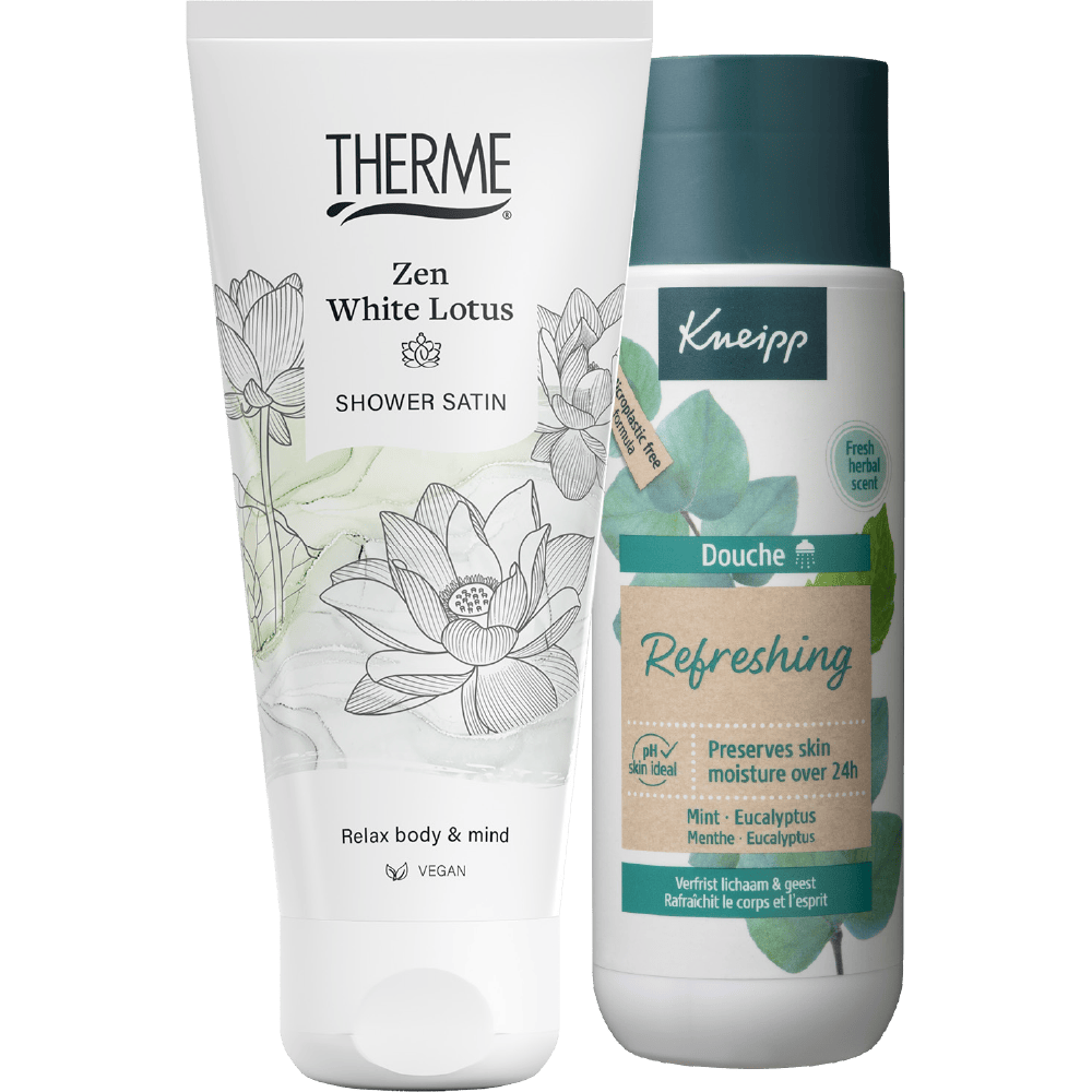Bijv. Therme Zen white lotus shower satin, 2 flessen à 200 ml van 13.98 voor 6.99.