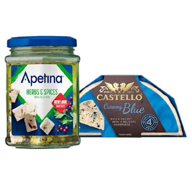 Bijv. Arla Apetina Witte kaasblokjes in olie, 2 potten à 265 gram van 2.99 voor 2.24.