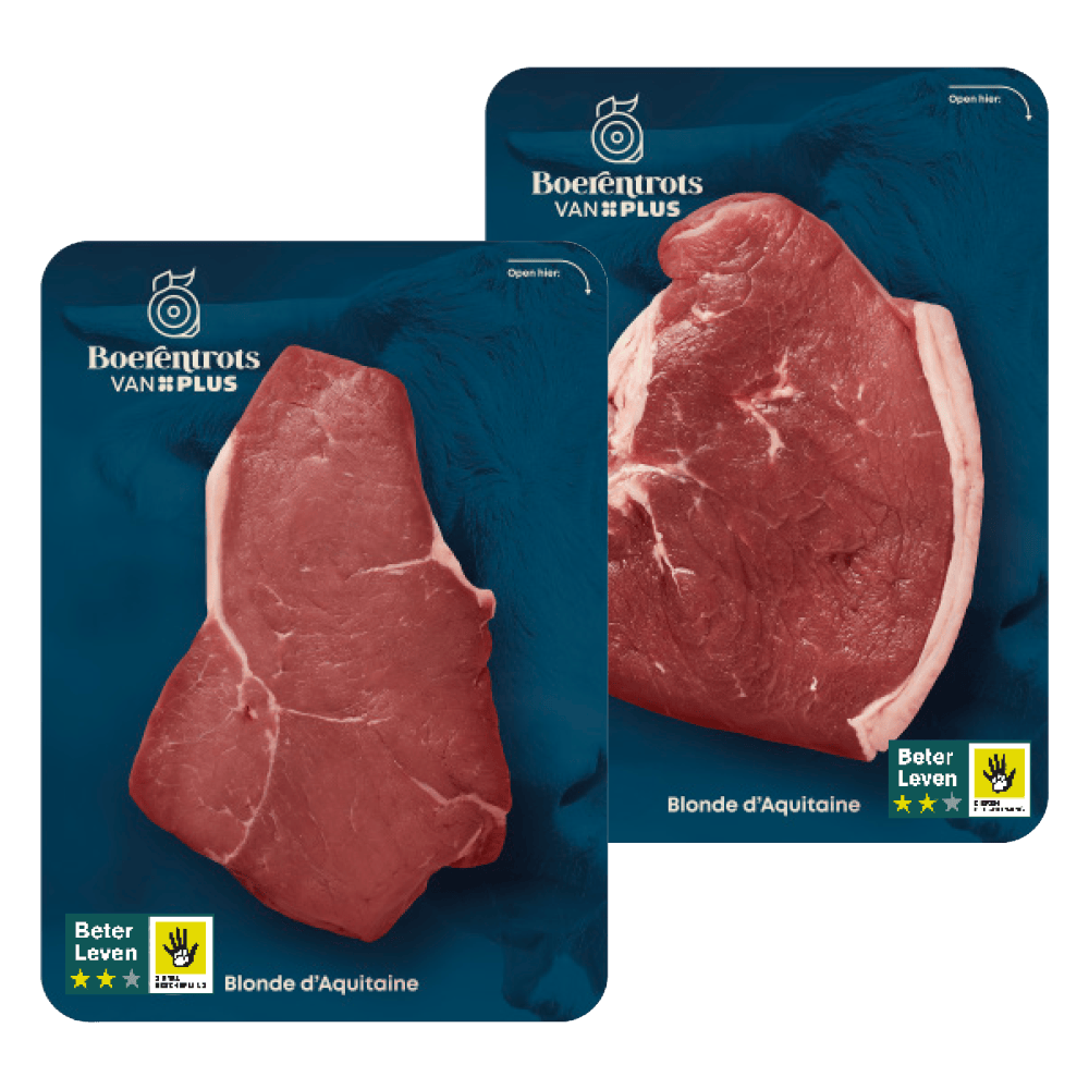 Boerentrots van PLUS Blonde d'Aquitaine Entrecote en ribeye