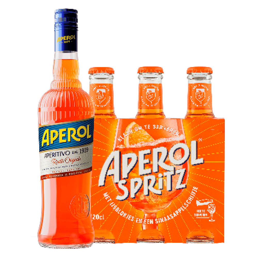 Bijv. Aperol, fles 70 cl van 15.59 voor 11.70.