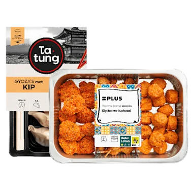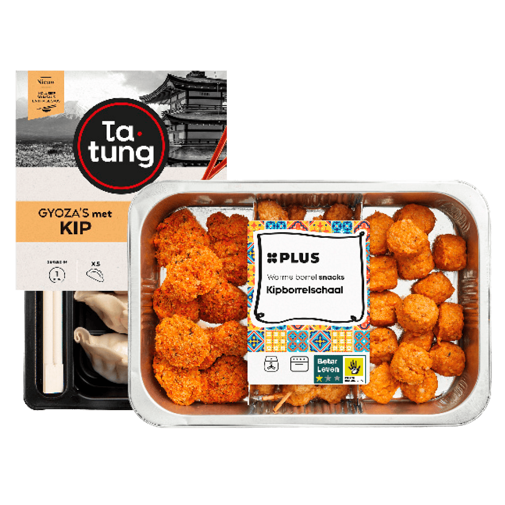Bijv. PLUS Kipborrelschaal, schaal 440 gram van 6.99 voor 5.24.