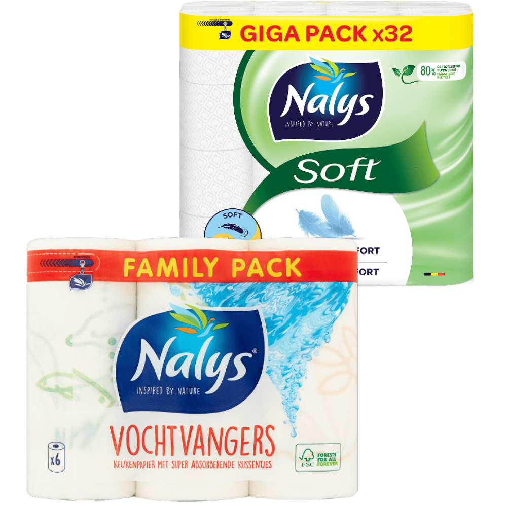 50 % KORTINGKeukenpapier vochtvangers en xtra power Pak 6 rollen en toiletpapier soft Pak 32 rollen OP=OP