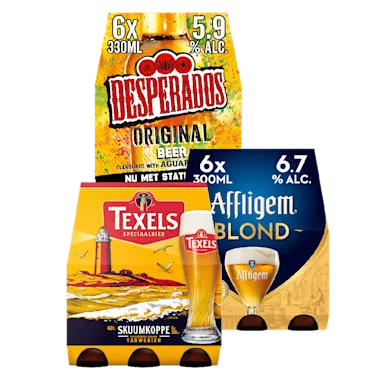 Bijv. Texels Skuumkoppe, set 6 flesjes à 30 cl van 9.99 voor 7.50.