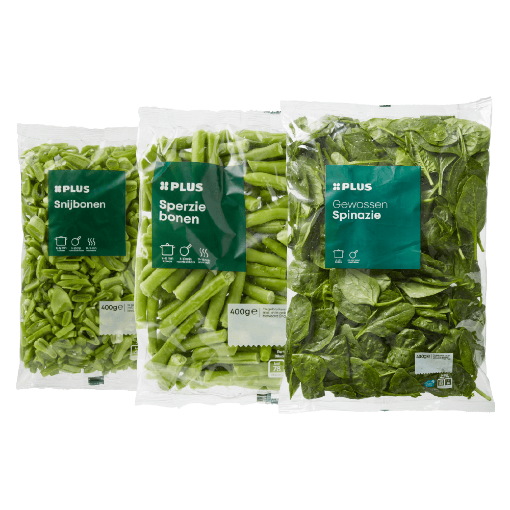 PLUS Snijbonen, sperziebonen, spinazie