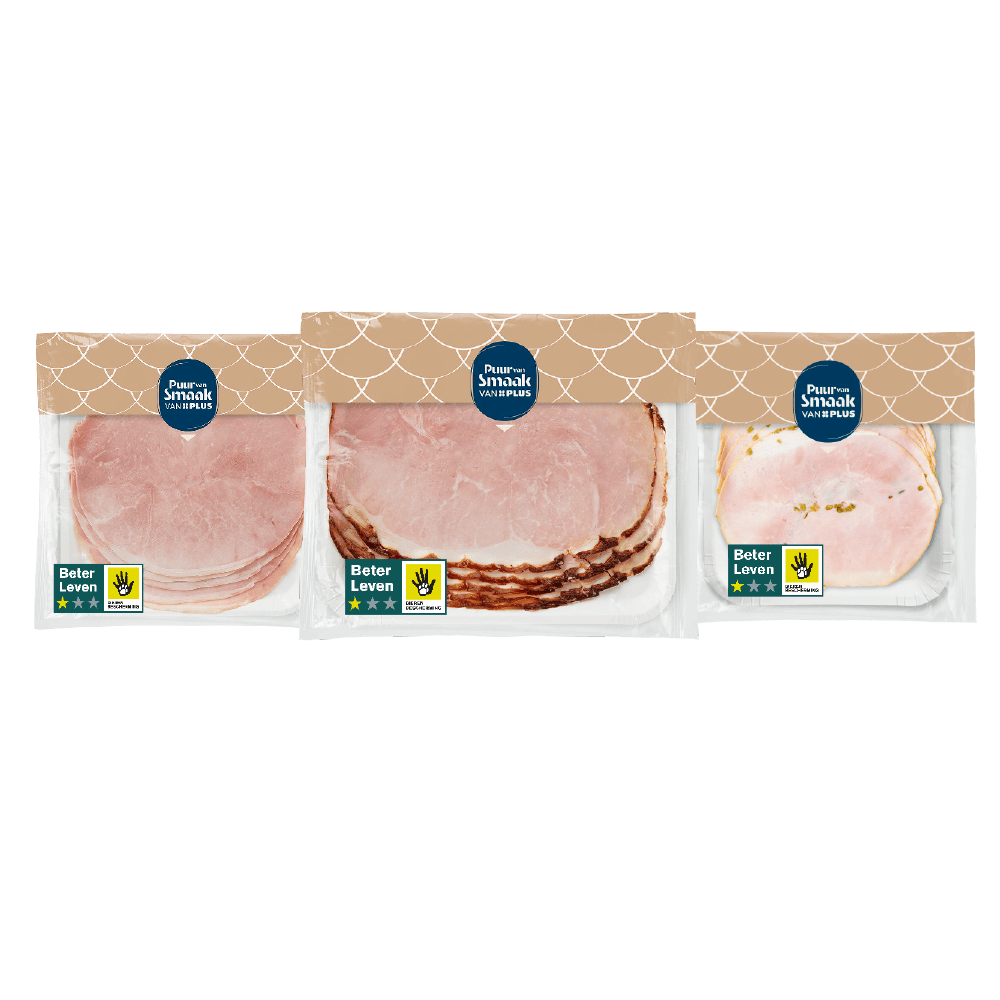 Puur van Smaak van PLUS Yorkham, ovengebakken ham en ham met asperge