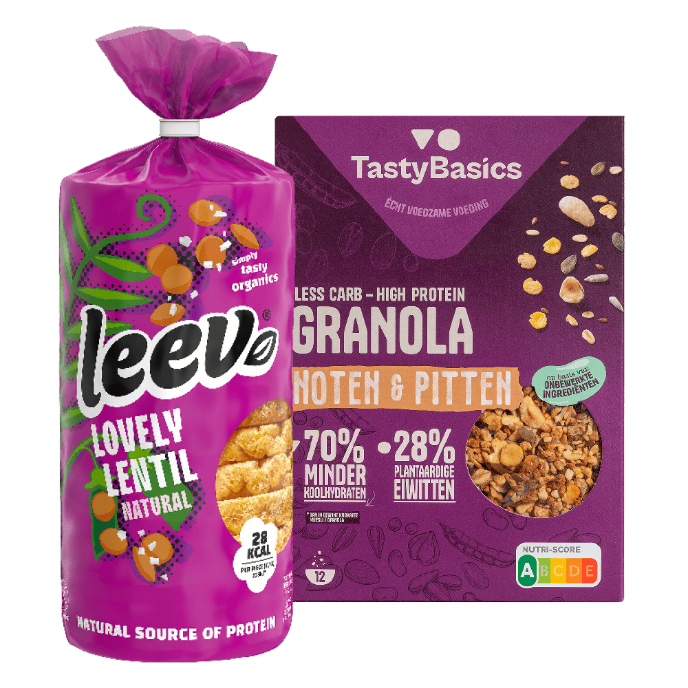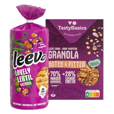 Bijv. Leev Linzenwafels natural, pak 100 gram van 2.29 voor 1.71.