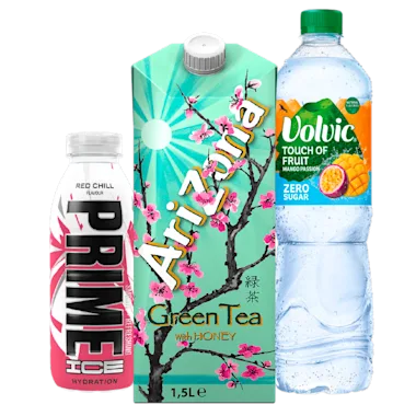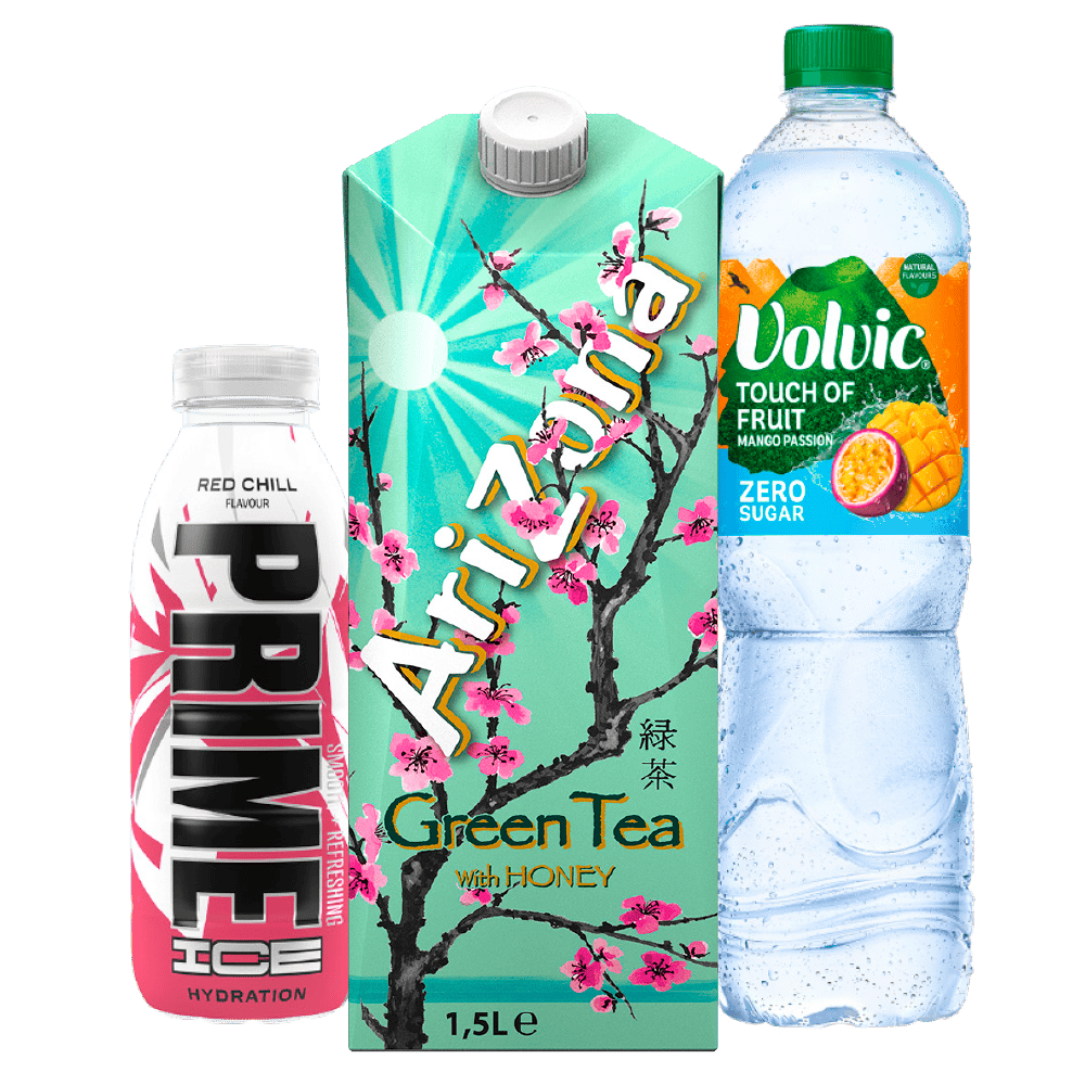 Bijv. Arizona Green tea, pak 1,5 liter van 2.59 voor 1.94.