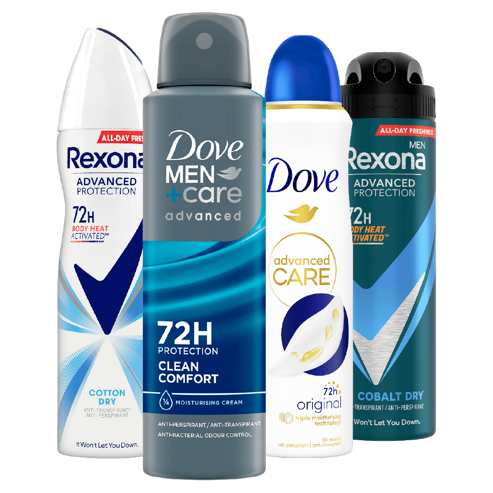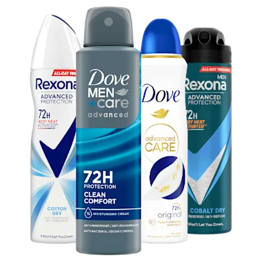 Bijv. Dove for Men anti-transpirant spray clean comfort, 2 bussen à 150 ml van 10.58 voor 5.29.