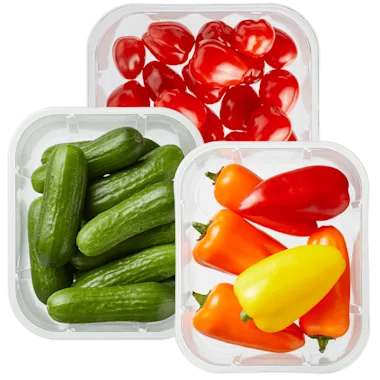 Biologisch PLUS Tomaten Zak 250 gram, PLUS Komkommer Schaal 230 gram, PLUS Radijsmix Schaal 250 gram, PLUS Paprika Schaal 175 gram, PLUS Paprika pitloos Schaal 175 gram, PLUS Tomaten mix of rood Schaal 250 gram 3 schalen