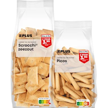 PLUS Kies & Mix Dipstokjes, grissini, picos of scrocchi
