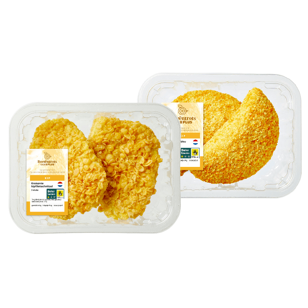 Boerentrots van PLUS Kipschnitzels en kip cordon bleu's