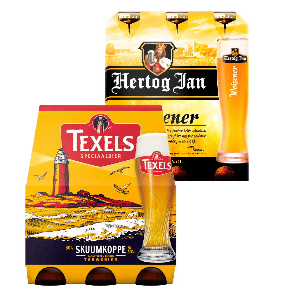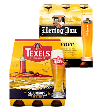 Bijv. Texels Skuumkoppe, set 6 flesjes à 30 cl van 9.99 voor 7.50.