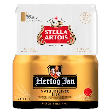 Bijv. Hertog Jan Pils, set 6 blikjes à 33 cl van 7.32 voor 5.49.