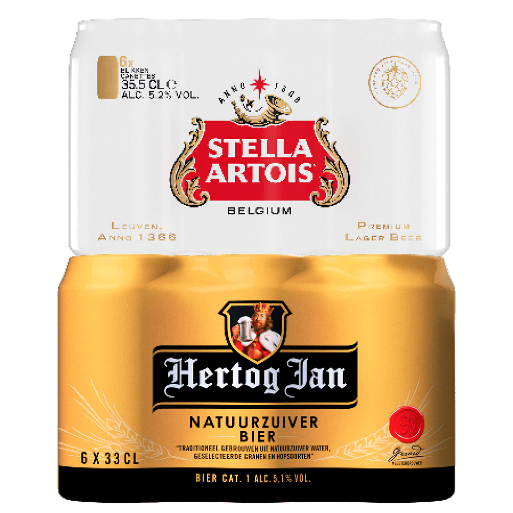 Alle sets met 6 flesjes en blikjes à 30-50 cl M.u.v. gekoelde varianten