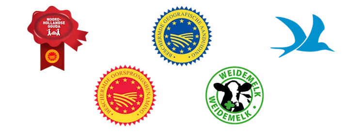 De ziltigere bodem waarop onze zwartbonte koeien grazen, de traditionele bereidingswijze en natuurlijke rijping zorgen voor een kaas van de hoogste kwaliteit, die extra vol en romig van smaak is. En erkend als beschermd streekproduct! Bijzonder trots zijn we op onze prijswinnende Klaverland kazen. In 2021 ontvingen bovendien onze Klaverland Jong Belegen 48+, Klaverland Extra Belegen 48+ en Klaverland Overjarig 48+ drie sterren bij de Superior Taste Awards. Daarnaast is de Noord-Hollandse Gouda Belegen in 2020 bekroond met een gouden award en zelfs in de top drie geëindigd van de World Championship Cheese Contest in Wisconsin. Heb je ook onze karakteristieke Klaverland geitenkaas gemaakt van 100% Hollandse geitenmelk al eens geproefd?