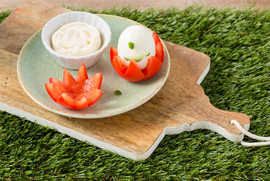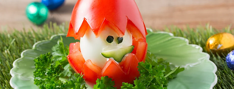 Verras je gezin met een vrolijk en vullend Pasen. Deze tomaatjes met ei zijn niet alleen gezond, maar brengen je tafel ook helemaal in de paassfeer.
