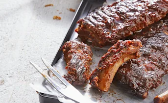 Gril het vlees vervolgens nog 1 keer rondom en breng een extra laagje glaze aan voor meer smaak, glans en een knapperig laagje. Deze ontstaat door het karamelliseren van de suiker.