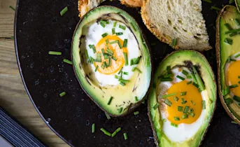 Tip: je kunt een halve avocado bewaren in water. Vul een verhoudbakje met een laagje water en leg de snijkant met pit naar beneden in het water. Sluit het bakje af en zet het in de koelkast. Dep de avocado voor gebruik even droog en hij smaakt nog heerlijk vers!