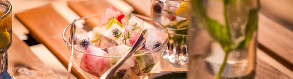 Serveer de ijsblokjes in een grote kan met water of verdeel de ijsblokjes over de waterglaasjes.