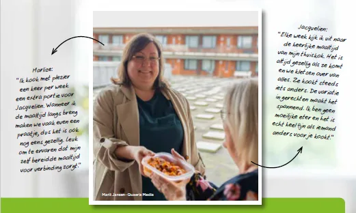 Bij PLUS vinden we het belangrijk dat iedereen goed kan eten. Ook als het bijvoorbeeld door leeftijd, gezondheid of een beperking lastig is om zelf te koken. Daarom steunen wij al jarenlang het goede werk van Stichting Thuisgekookt. Zij brengen mensen die niet elke dag voor zichzelf kunnen koken in contact met een buurtgenoot die een extra portie voor hen kookt. Zoals thuiskok Marlize voor maaltijdontvanger Jacquelien.