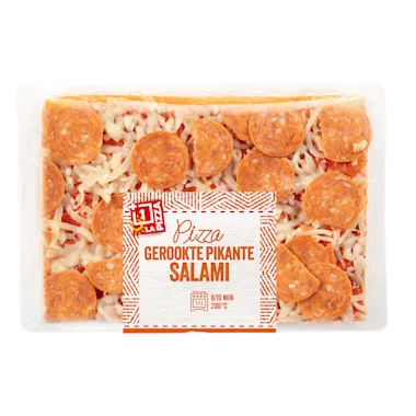 Probeer de heerlijke Plaat Pizza Spicy Salami: een knapperige bodem met pittige salami en een smeuïge kaasmix. Subtiel gekruid voor een extra smaakvolle ervaring. Geniet van een authentieke Italiaanse pizza bij jou thuis.