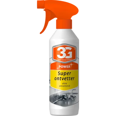 3G Super Ontvetter is zodanig ontwikkeld dat het super effectief is tegen opgehoopt vet en vuil. Voor het beste resultaat gebruikt u een schone doek en warm water om het oppervlak na te spoelen. Omdat de formule supergoed is hoeft u niet veel kracht te zetten. Zo maakt u zonder moeite professioneel schoon.