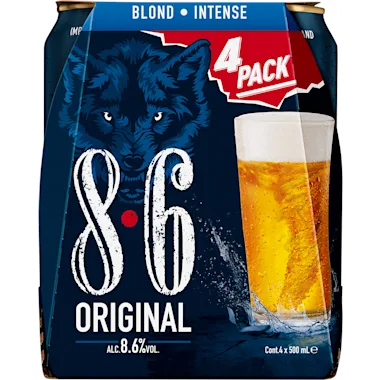 8.6 Original is een intens bier met 8,6% alcohol. Het bier is uniek aangezien het een ondergistend bier is, lager, met een intense smaak. 8.6 Original is vol in body en rijk in mondgevoel.