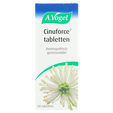 A.Vogel Cinuforce tabletten® is een homeopathisch geneesmiddel* zonder specifieke therapeutische indicatie toegepast volgens de principes van de homeopathische geneeswijze. Dit houdt in dat wij vanuit wetgeving geen informatie over de indicatie van dit product mogen verstrekken.