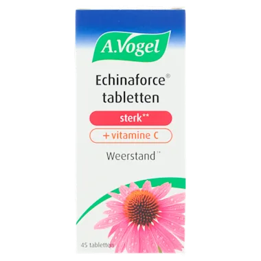 Echinaforce tabletten sterk + vitamine C bevat een hoge dosering Echinacea purpurea (rode zonnehoed). Deze Echinaforce variant is bijzonder door de toegevoegde vitamine C, die onder andere helpt bij de bescherming van gezonde lichaamscellen.