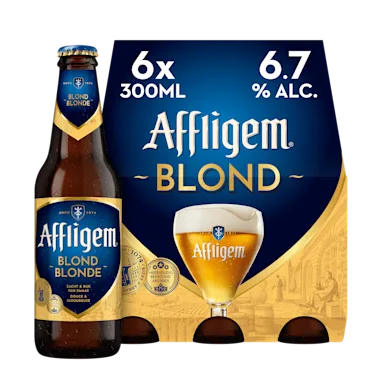 Affligem Blond is een evenwichtig en verfrissend bier. Deze laten ze een tweede keer gisten op de fles, waardoor je iets meer van de gist meekrijgt. Dit merk je door de smaak en geur van tropisch fruit en iets meer pit. Het is de brouwer gelukt om het geheel mooi in balans te houden en evenwicht te vinden tussen de koolzuur, aroma, smaak en body van het bier.