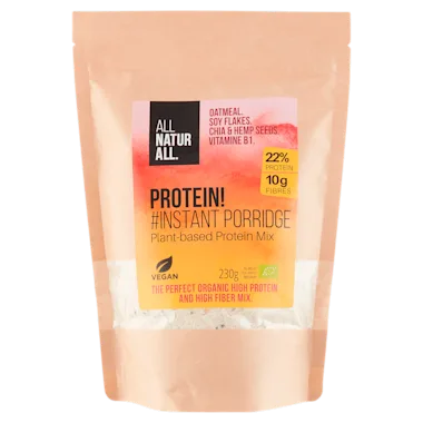 Volkoren HAVERvlokken* 70%, SOJAvlokken* 22% gedroogd chiazaad* (Salvia Hispanica), hennepzaad gepeld*, vitamine B1 *=biologisch. Kan sporen bevatten van andere glutenbevattende granen, pinda's (aardnoten), noten, sesamzaad.